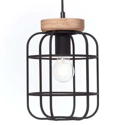Beschreibung Brilliant Gwen Pendelleuchte Metall Holz Schwarz | Geeignet für 3x E27