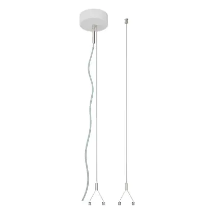 Der Ledvance Linear IndiviLED Aufhängungssatz in Weiß ist ein komplettes Abhängeset für einfache und schnelle Montage einer Leuchte. Die Stahlseillänge sind dank Schnellspannerklemme leicht anpassbar. Das Aufhängeset beinhaltet Deckenanschlussdose, Steckklemme, 2 Aufhängeseile und ein transparentes Kabel. Der Satz verfügt über einen Anschluss mit 5-poliger Doppel-Steckverbindungsklemme und kommt mit einem Deckenkasten aus Metallblech (weiß pulverbeschichtet) daher. Die Hängekabel und Kabelclips sind aus Edelstahl.