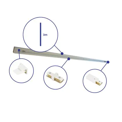 Beschreibung Rail Set 1-Phasen 3 Meter Weiß | incl. Abschlusskappe, Stromanschluss und I-Verbinder